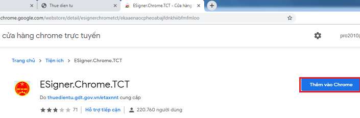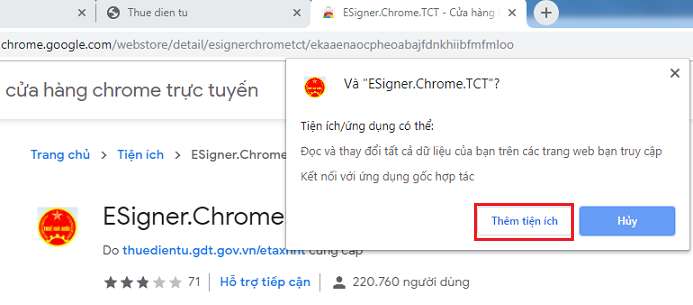 Cài đặt công cụ dùng thuedientu.gdt.gov.vn trên Google Chrome